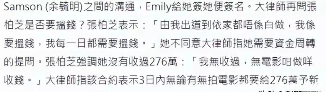 张柏芝最近在法庭上闹翻了天。12月8号开庭时,她被律师连环盘问到崩溃大哭,说"我两天没睡觉,所有报道都是假的"。这场官司是因为她和前经纪人余毓兴签过一份4276万港元的电影合约,对方说她没拍够电影要还钱,张柏芝则否认签名有效。